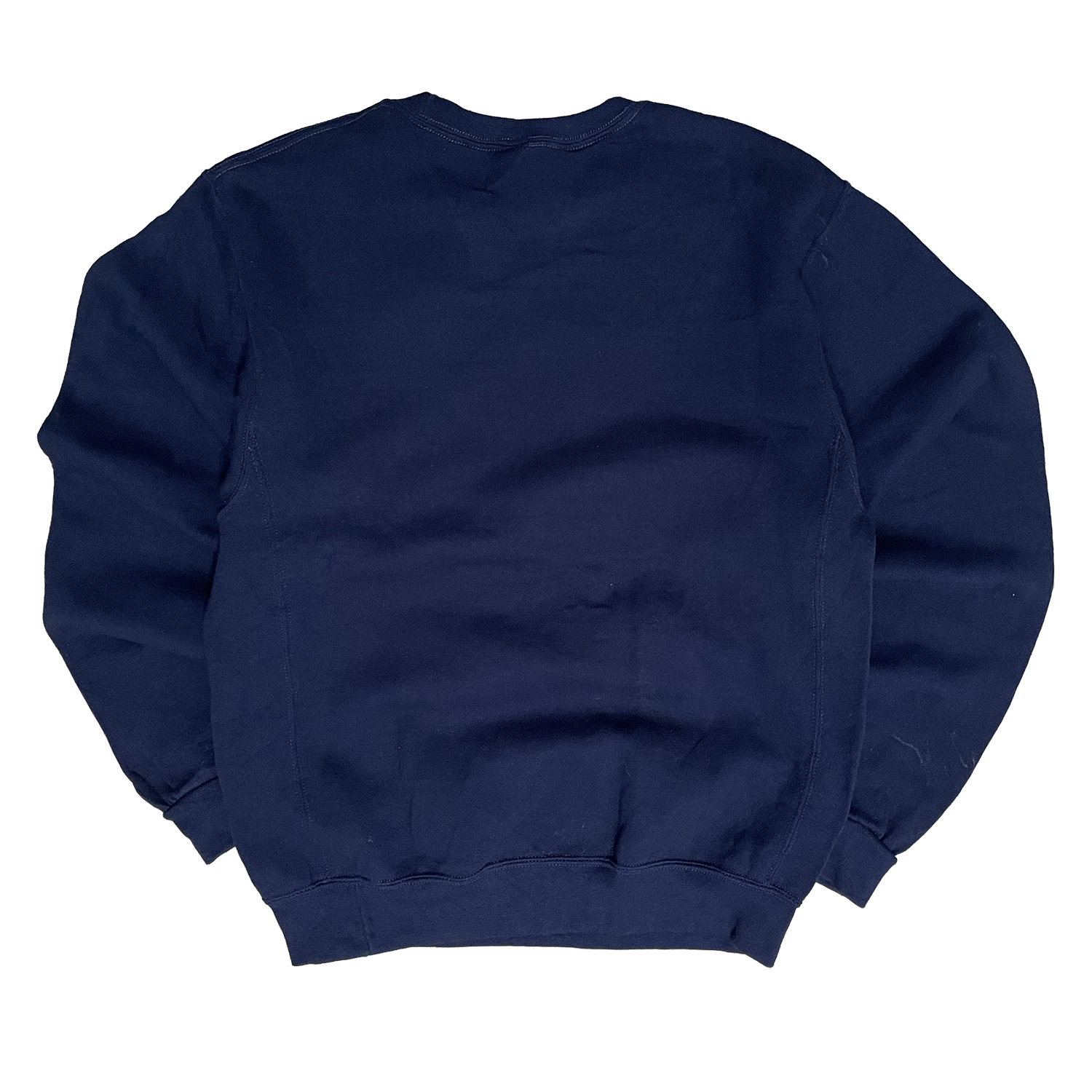 Sweat oversize bleu marine avec petit logo avant. Taille S. Grade A.
