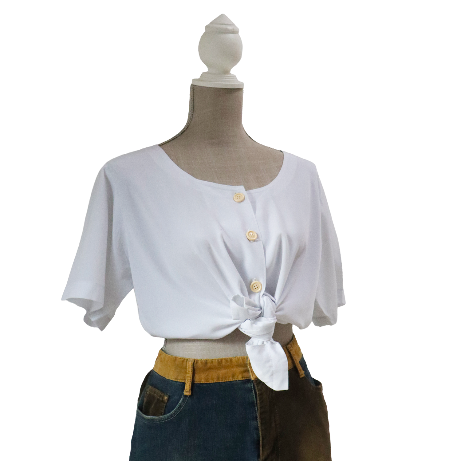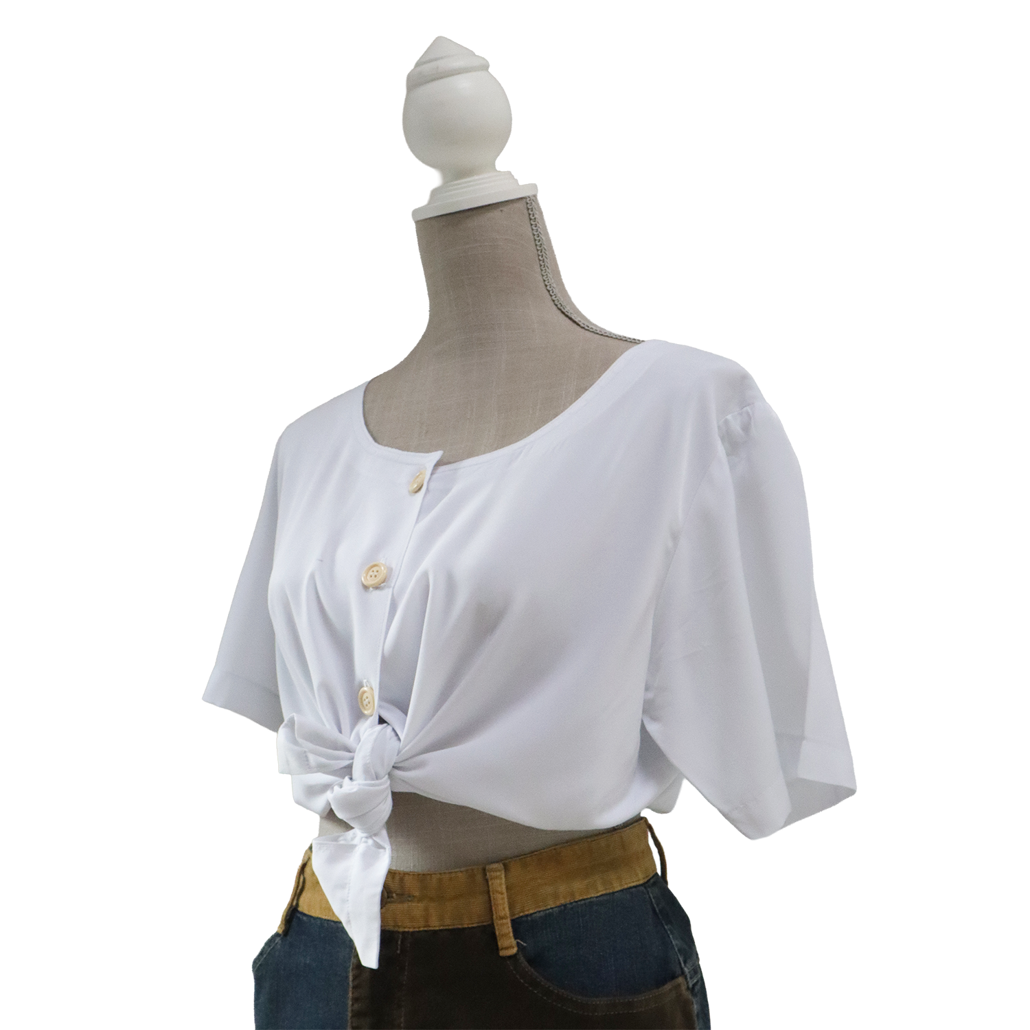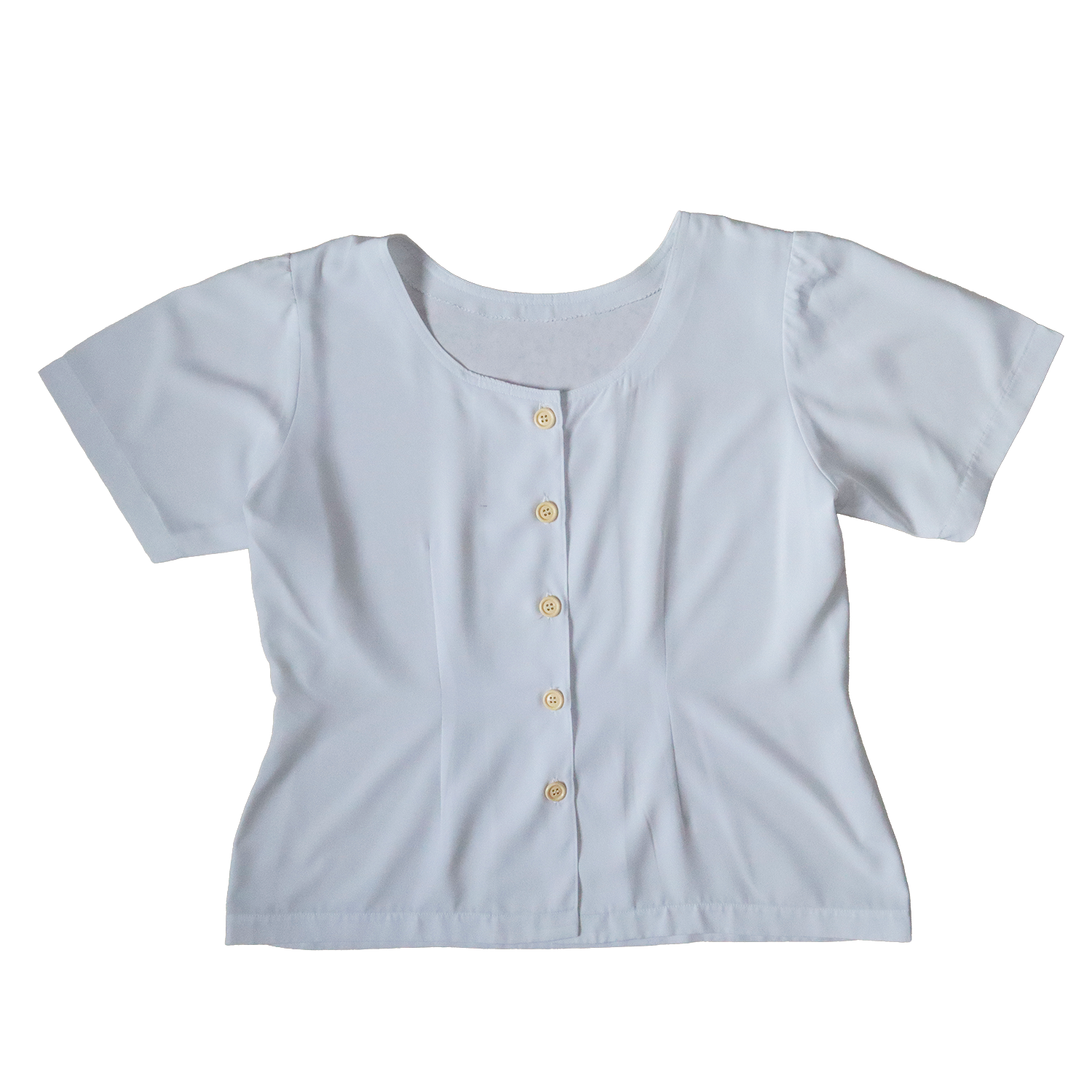 Haut blanc pour femme avec boutons sur le devant. Chemiser à porter de manière plus formelle ou plus décontractée. Tissu légé. Col rond.