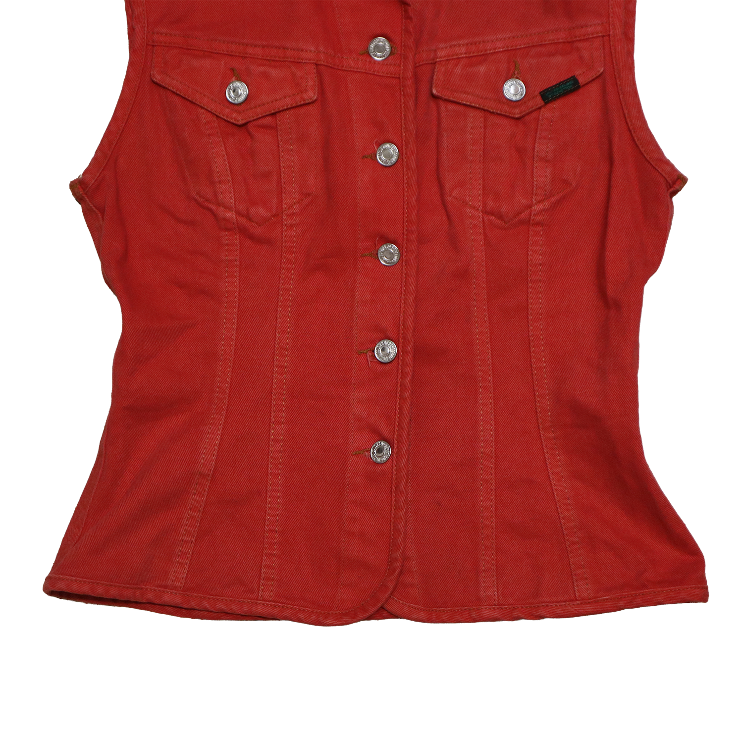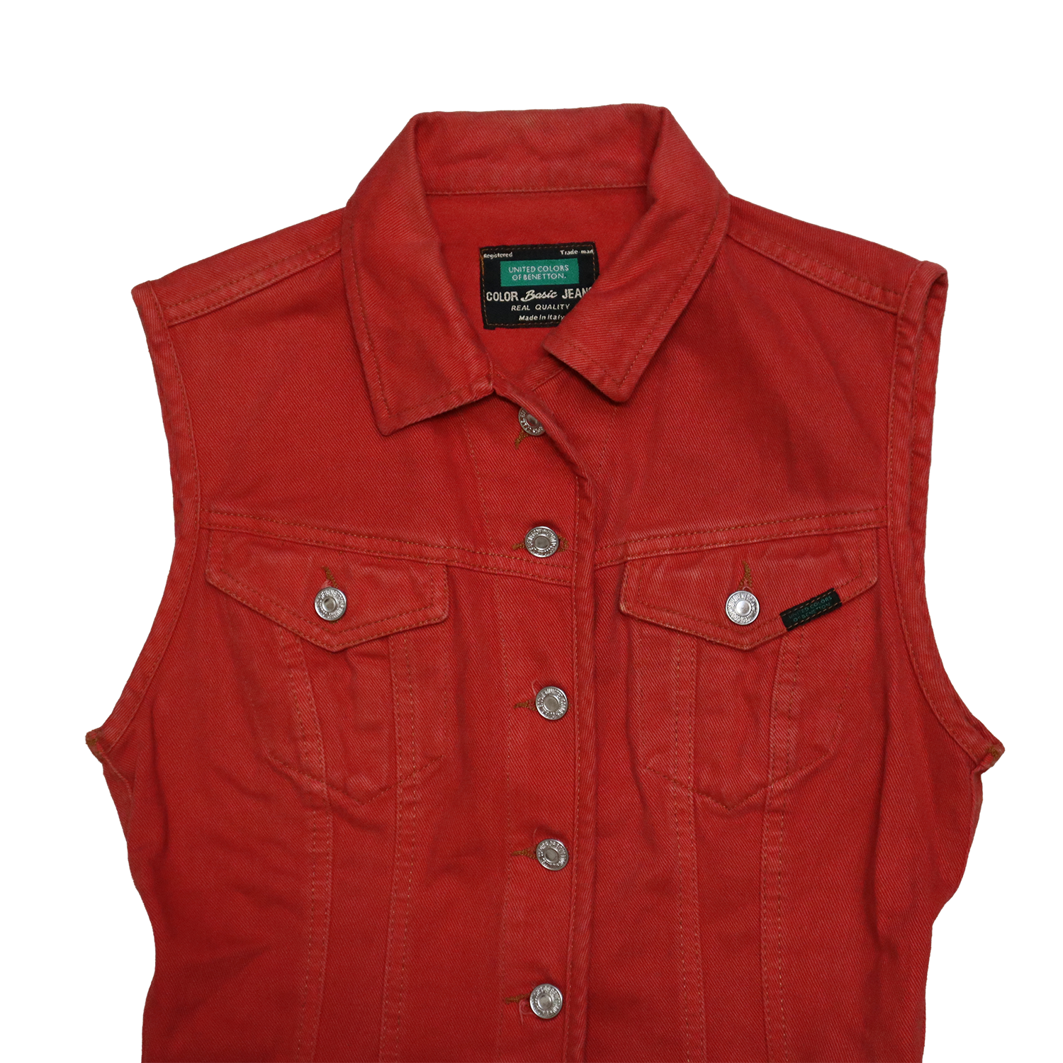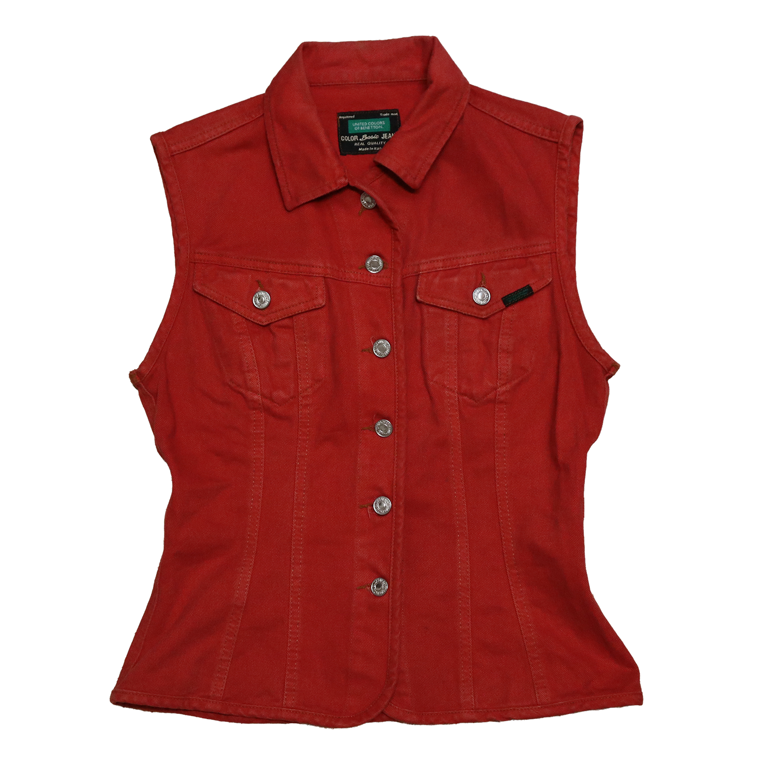 Haut Benetton en jeans - Sans manche - M - Rouge délavé