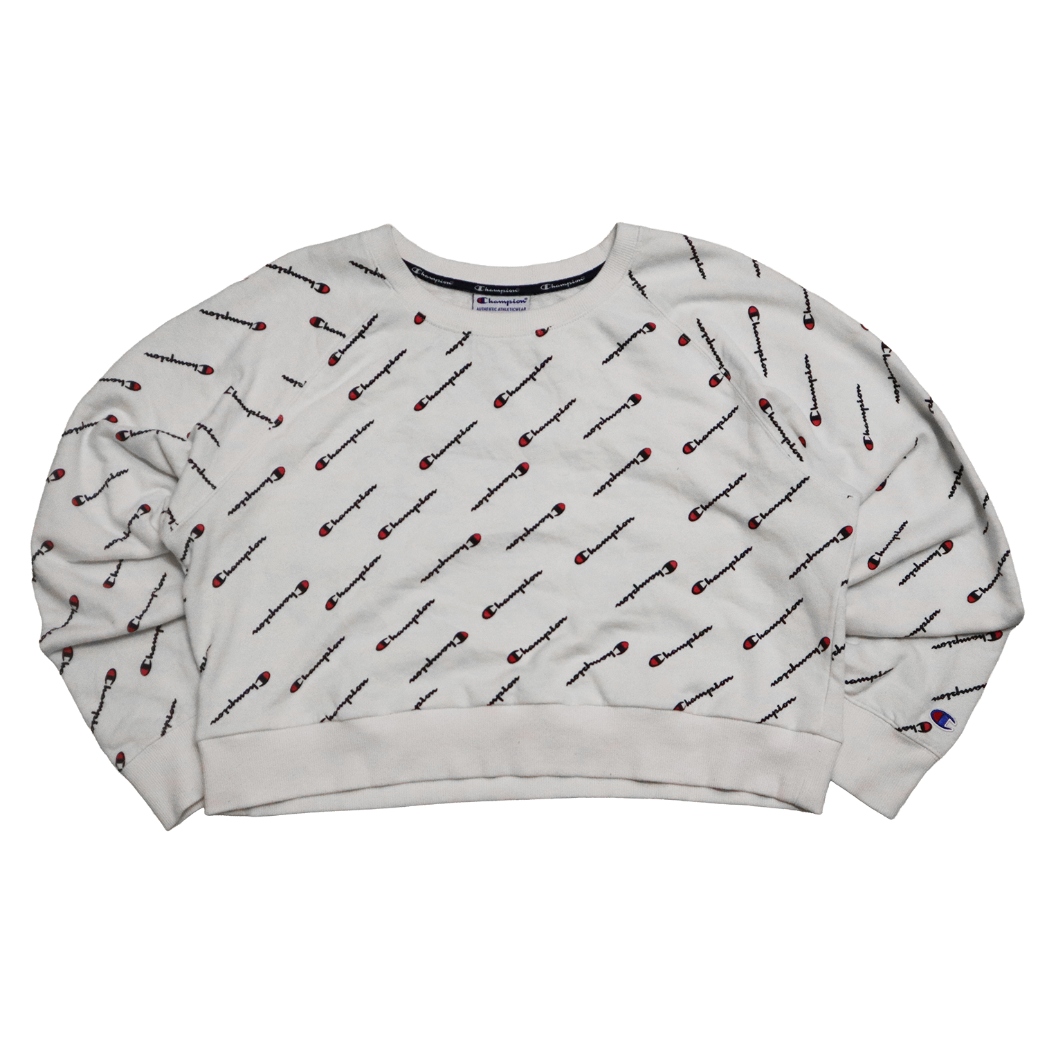 Pull Champion - Croptop Upcyclé - S - Blanc à motif