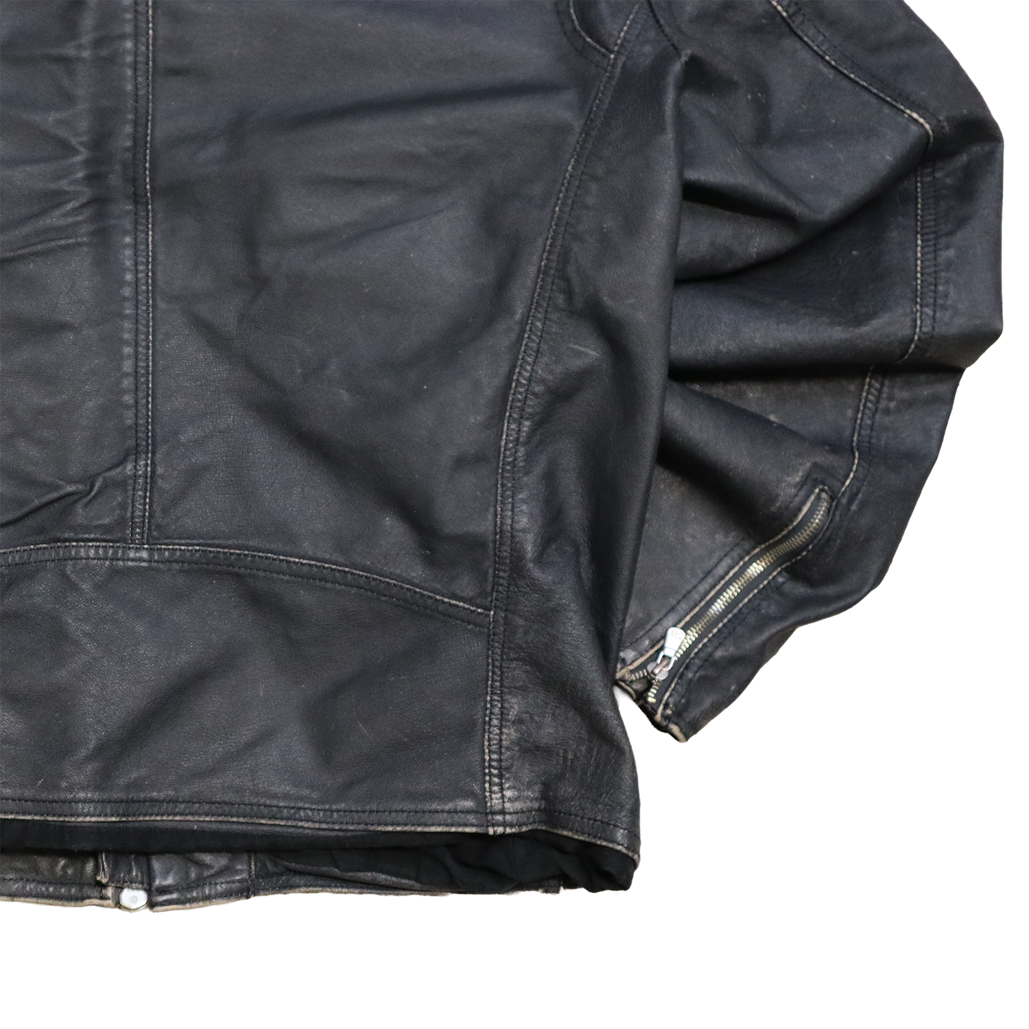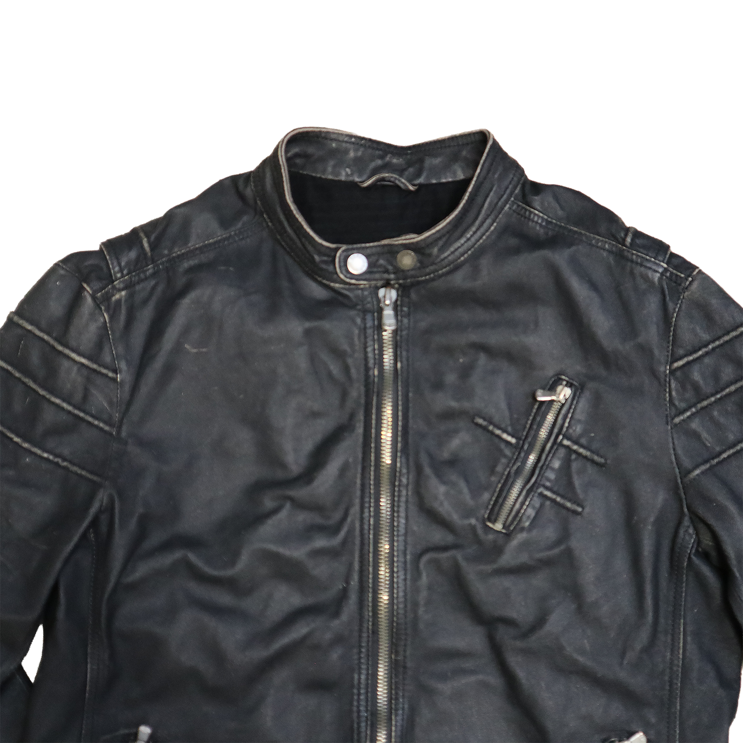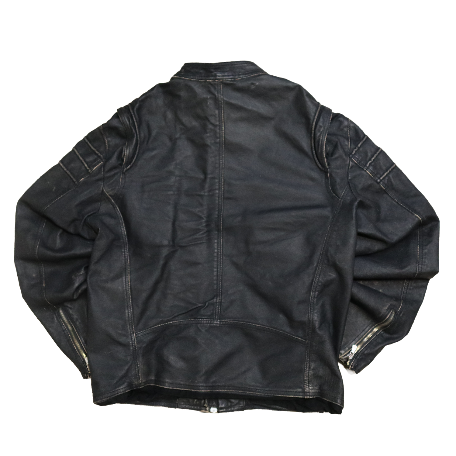 Veste en cuir noir patinée - Style motarde - XL